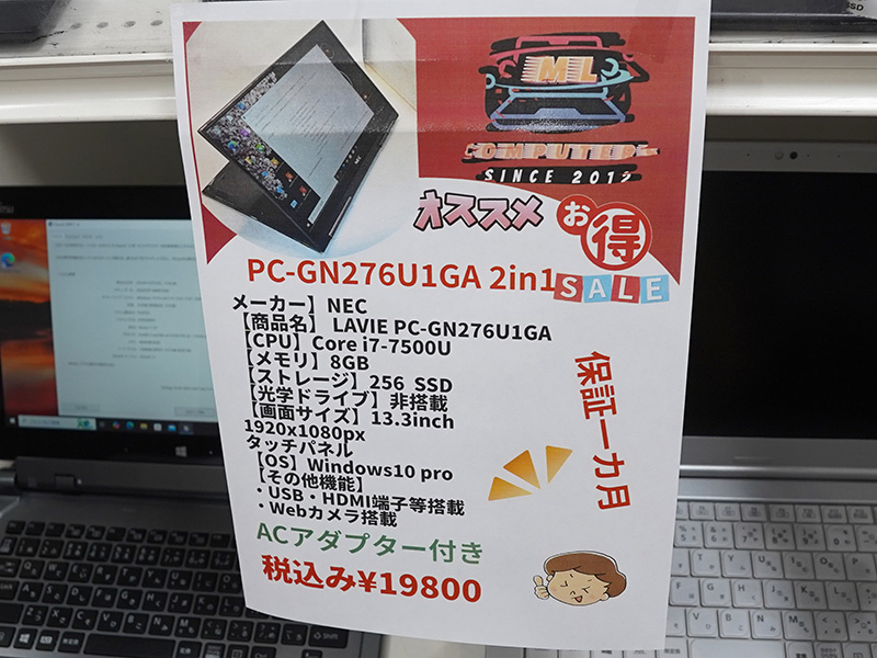 NECの13.3型2in1が19,800円、Core i7や8GBメモリ搭載の中古品セール