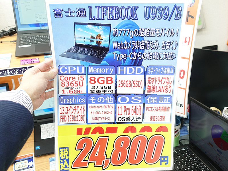 第10世代Core搭載で34,800円など、富士通の軽量モバイルノートがお得!中古PCセール