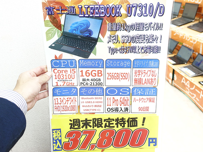 第10世代Core搭載で34,800円など、富士通の軽量モバイルノートがお得!中古PCセール