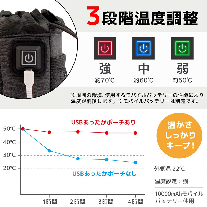 • 自転車用アタッチメント付きUSBあったかポーチ