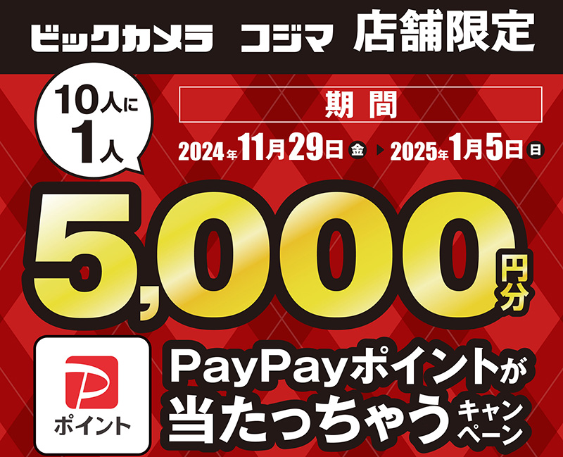 ビックカメラ・コジマでバーコード決済すると「PayPayポイント5,000円分」が当たるキャンペーン