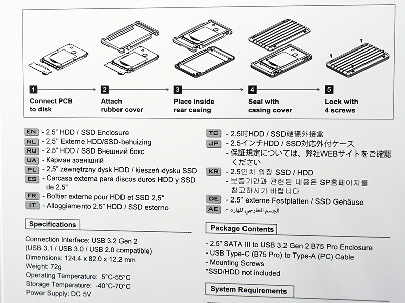 工具不要な玄人志向の2.5インチSSD/HDD用ケース