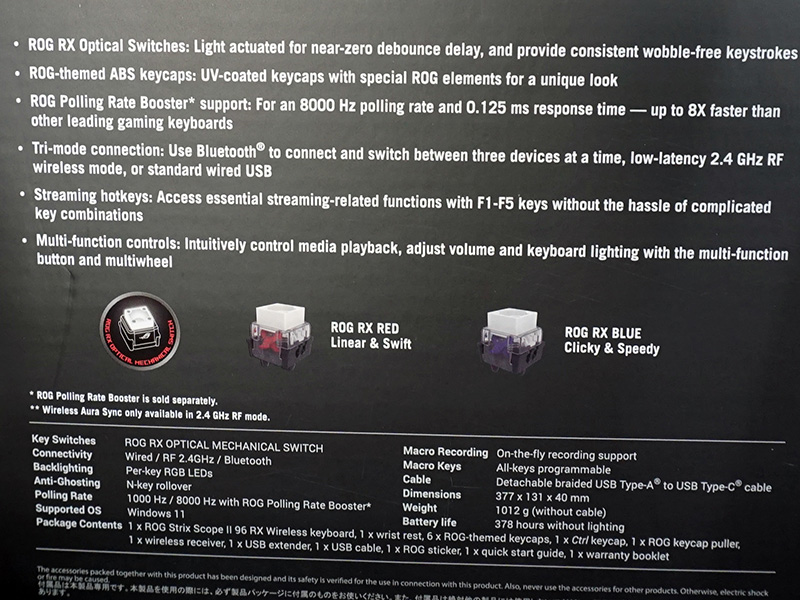 ASUS ROG初のラピトリ対応キーボード「ROG Falchion Ace HFX」の実機展示、TSUKUMOでスタート