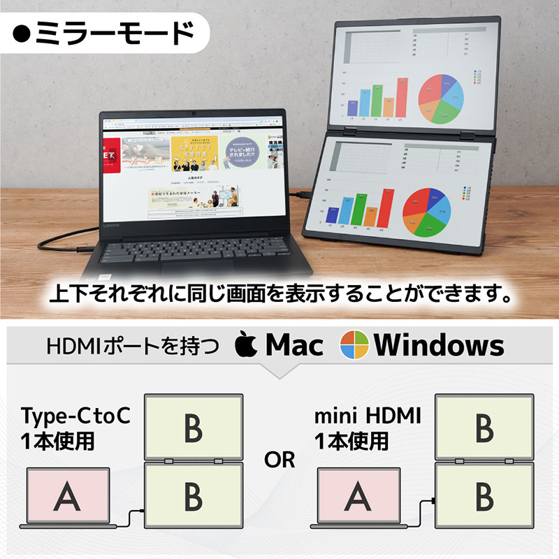 Mac/Windows両対応 上下2画面拡張ポータブルモニター