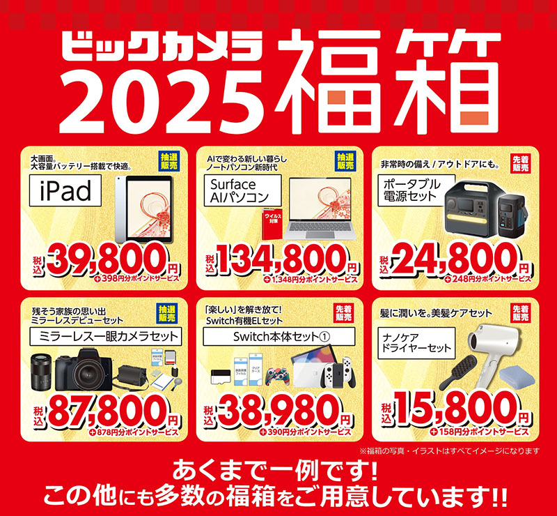 ビックカメラの「2025年新春福箱」店頭販売は1月1日から、「iPad 64GB福箱」が39,800円など