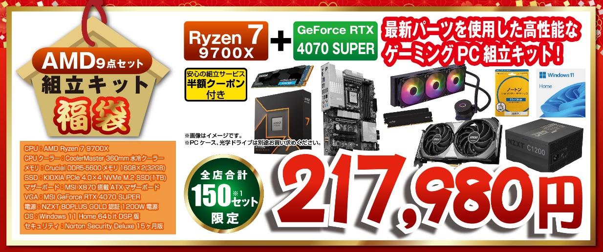 パソコン工房「超 新春初売り」が1月1日から、PCパーツ一式やゲーミングデバイス福袋などを用意