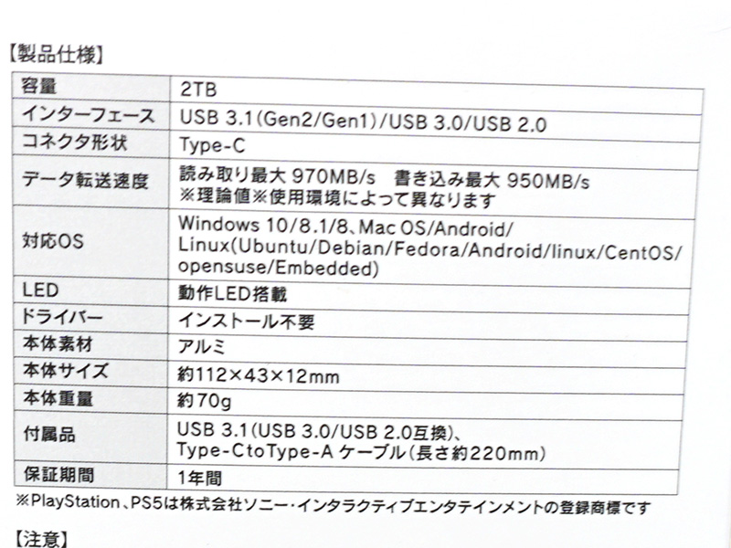 最大リード970MB/sのポータブルSSD 1TBが入荷、PS4にも対応