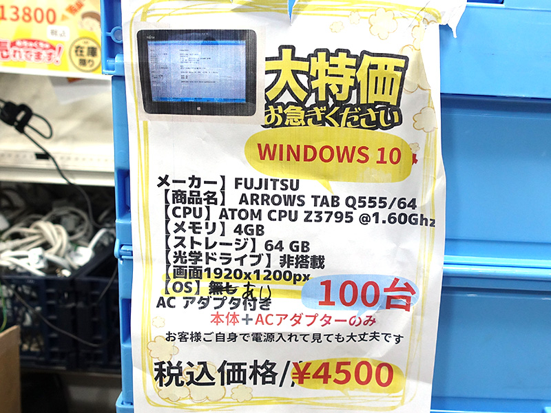 10.1インチWindowsタブレットが4,500円!中古PCセール