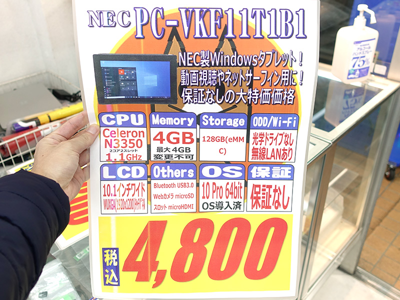 NECの10.1インチWindowsタブレットが4,800円!中古PCセール