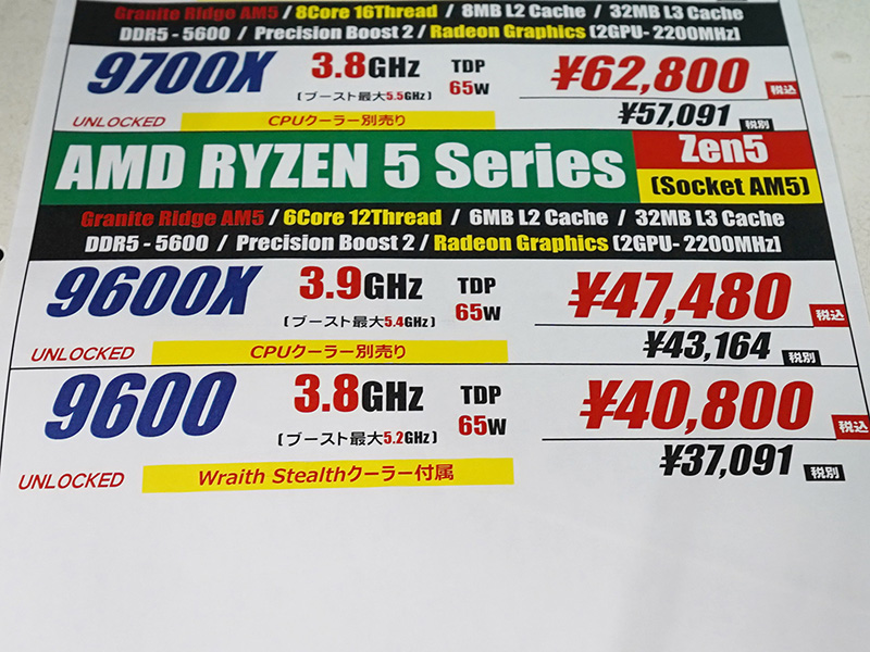 Zen5採用の「Ryzen 5 9600」が発売、シリーズ最下位モデルでCPUクーラー付属