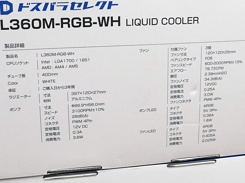 ドスパラセレクトの安価な水冷クーラーが発売、360mmラジエーター採用で12,800円(6/7)