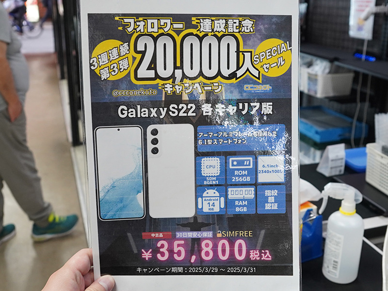 「Galaxy S22 5G」の中古品が35,800円など!CCコネクトの期間限定セール