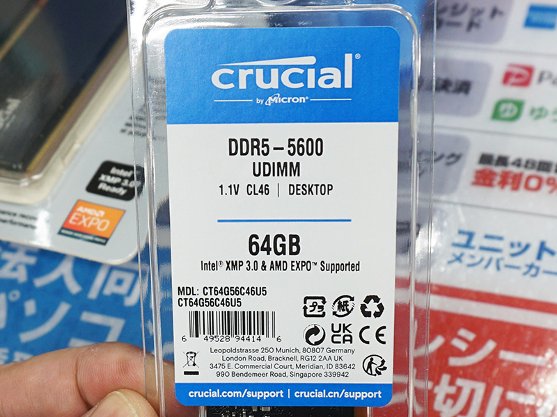 1枚で64GBのDDR5-5600 UDIMM/SO-DIMMがCrucialから、価格は22,980円(3/5)