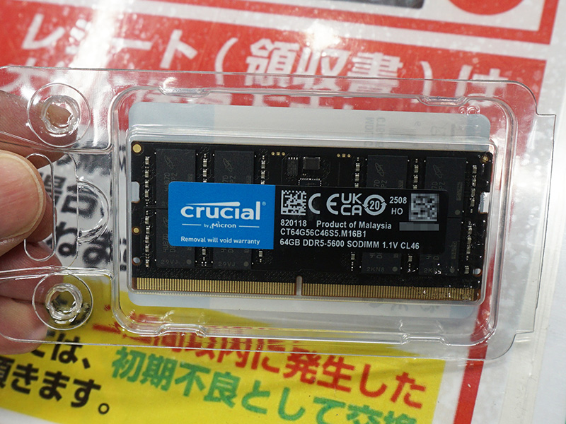 1枚で24GBや48GBのDDR5 SO-DIMMがCrucialから