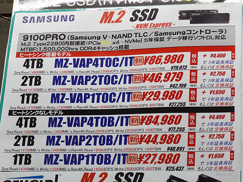 【やじうまミニレビュー】満を持して登場したPCIe 5.0対応SSD「Samsung SSD 9100 PRO」。性能はもちろん強烈! - PC Watch