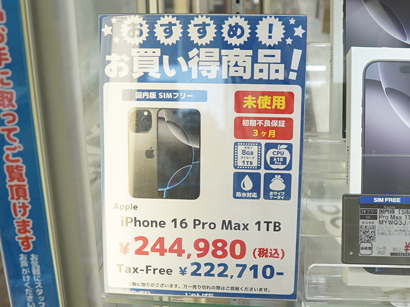 iPhone 16 ProMax 1TBが244,980円、iPhone 15が97,980円など!未使用品が大量入荷(3/7)