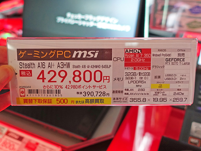 Ryzen AI 7 350搭載のゲーミングノート「Stealth A16 AI+ A3HW」がMSIから