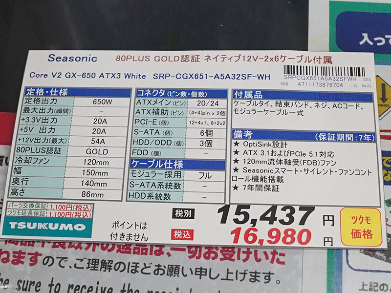 Seasonicのファンレス700W電源「PRIME FANLESS TX-700」が入荷