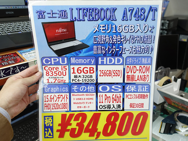 Core i5-8350UやDVD-ROMドライブ搭載「LIFEBOOK A748/T」が34,800円!中古PCセール