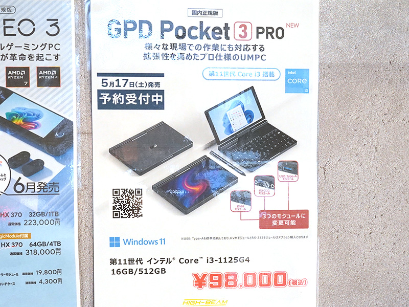 第11世代Core搭載の8インチUMPC「GPD Pocket3 Pro 国内正規版」が発売
