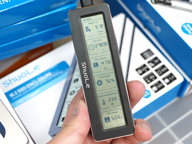 S.M.A.R.T情報を表示できるディスプレイ搭載のM.2 SSDケース