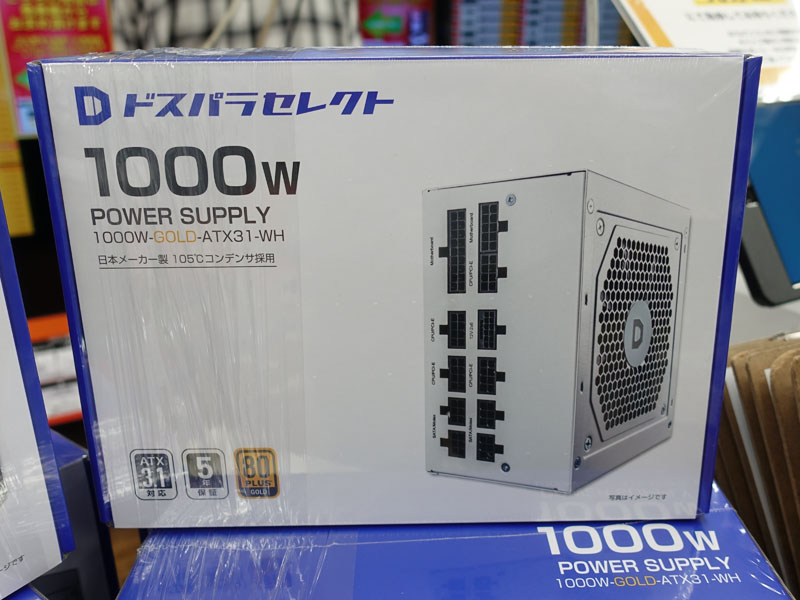ドスパラセレクトのATX3.0対応/80PLUS GOLD認証電源に白色モデル