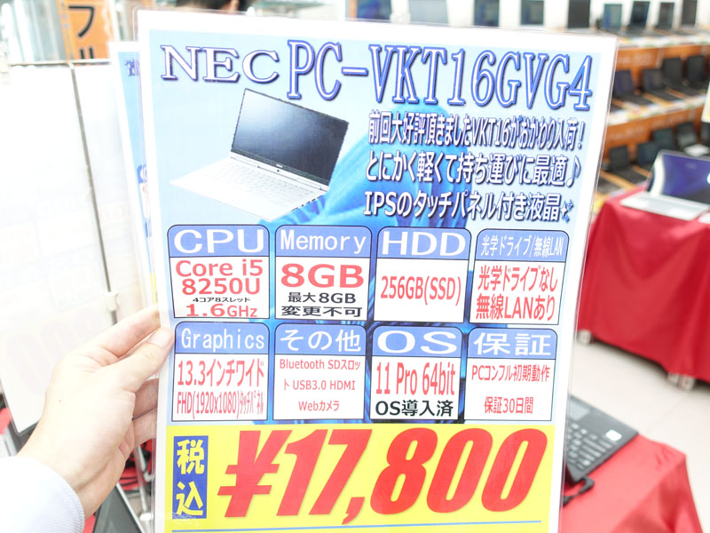 第8世代Core i5搭載/タッチ対応のNEC製モバイルノートが17,800円、中古PCセール