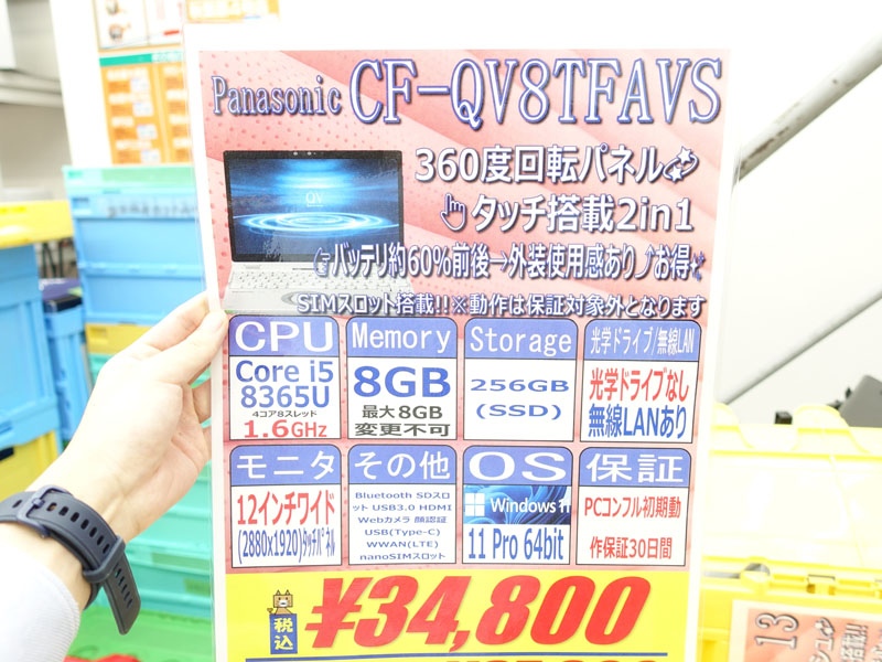 Core i5-8365U搭載の高解像度2in1ノートが34,800円、中古PCセール
