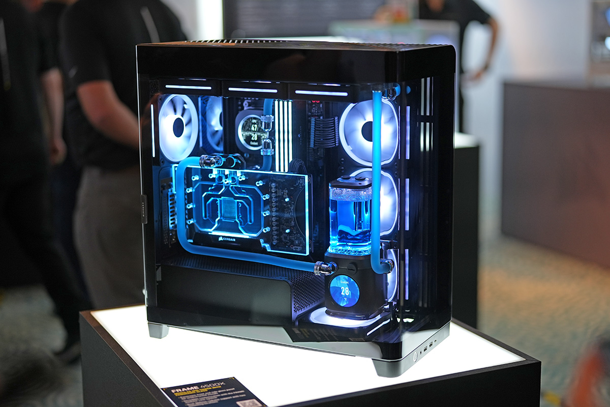 曲面ガラスのピラーレスケースやVirtual Stream Deck対応マウス、無線にも対応した本格自作キーボードなどをCORSAIRがアピール