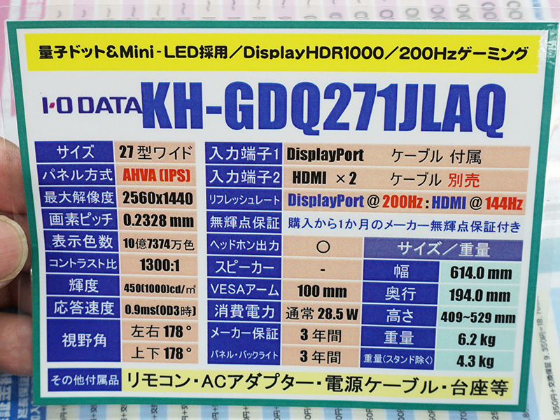Mini LED/量子ドット採用の27インチWQHDモニター「KH-GDQ271JLAQ」がアイ・オーから、リモコン付き(6/7)