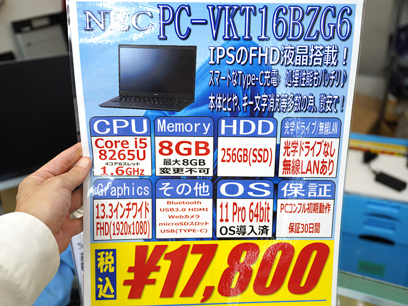 第8世代Core/フルHD液晶のNEC製13.3インチノートが17,800円!中古PCセール