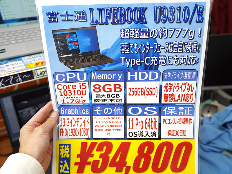 第10世代Core搭載の軽量ノート「LIFEBOOK U9310/E」が34,800円!中古PCセール