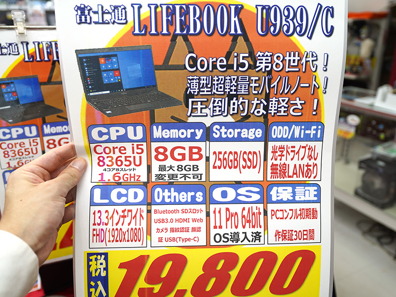 富士通の13.3インチ軽量ノート「LIFEBOOK U」シリーズが9,800円から!中古PCセール