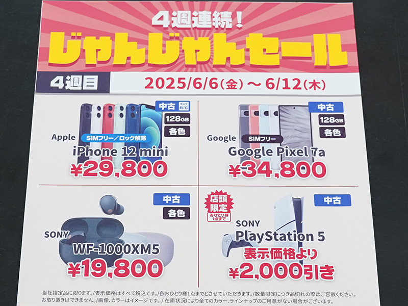 Pixel 7aの中古品が34,800円など、「4週連続! じゃんじゃんセール」の4週目がスタート