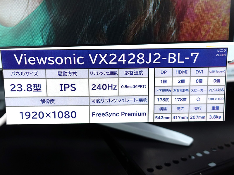 パステルカラーの23.8型ゲーミングモニターがViewSonicから、ドスパラ専売モデル