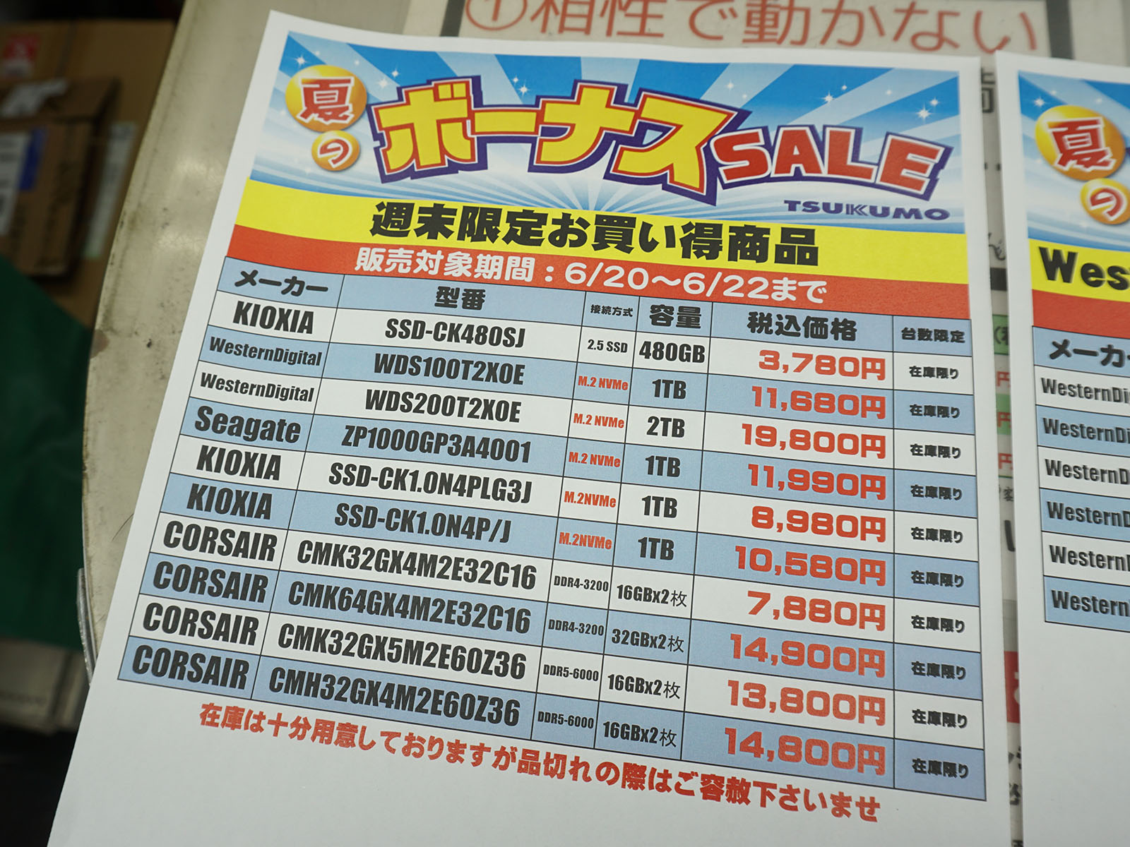 アキバお買い得価格情報(6月19日~20日調査)