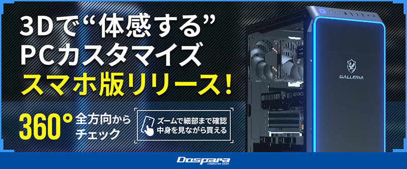 GALLERIA PCのカスタムを体験できる「3Dカスタマイズシミュレーター」がスマホ閲覧に対応