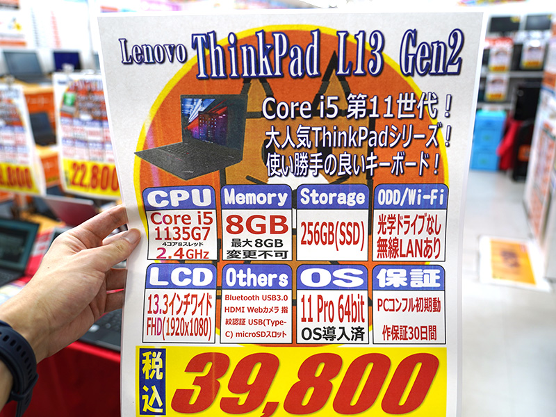 第10世代Core/16GBメモリ搭載の13.3インチ「ThinkPad X13 Gen1」など、ThinkPadの中古品セール