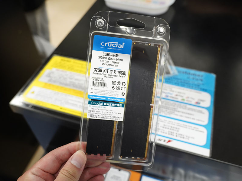 CrucialのDDR5-6400対応CUDIMM/CSODIMM 16GB×2枚組が入荷