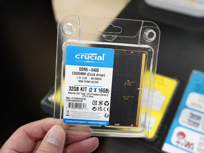 CrucialのDDR5-6400対応CUDIMM/CSODIMM 16GB×2枚組が入荷