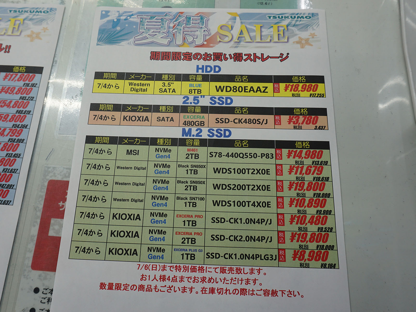 アキバお買い得価格情報(7月3日~4日調査)