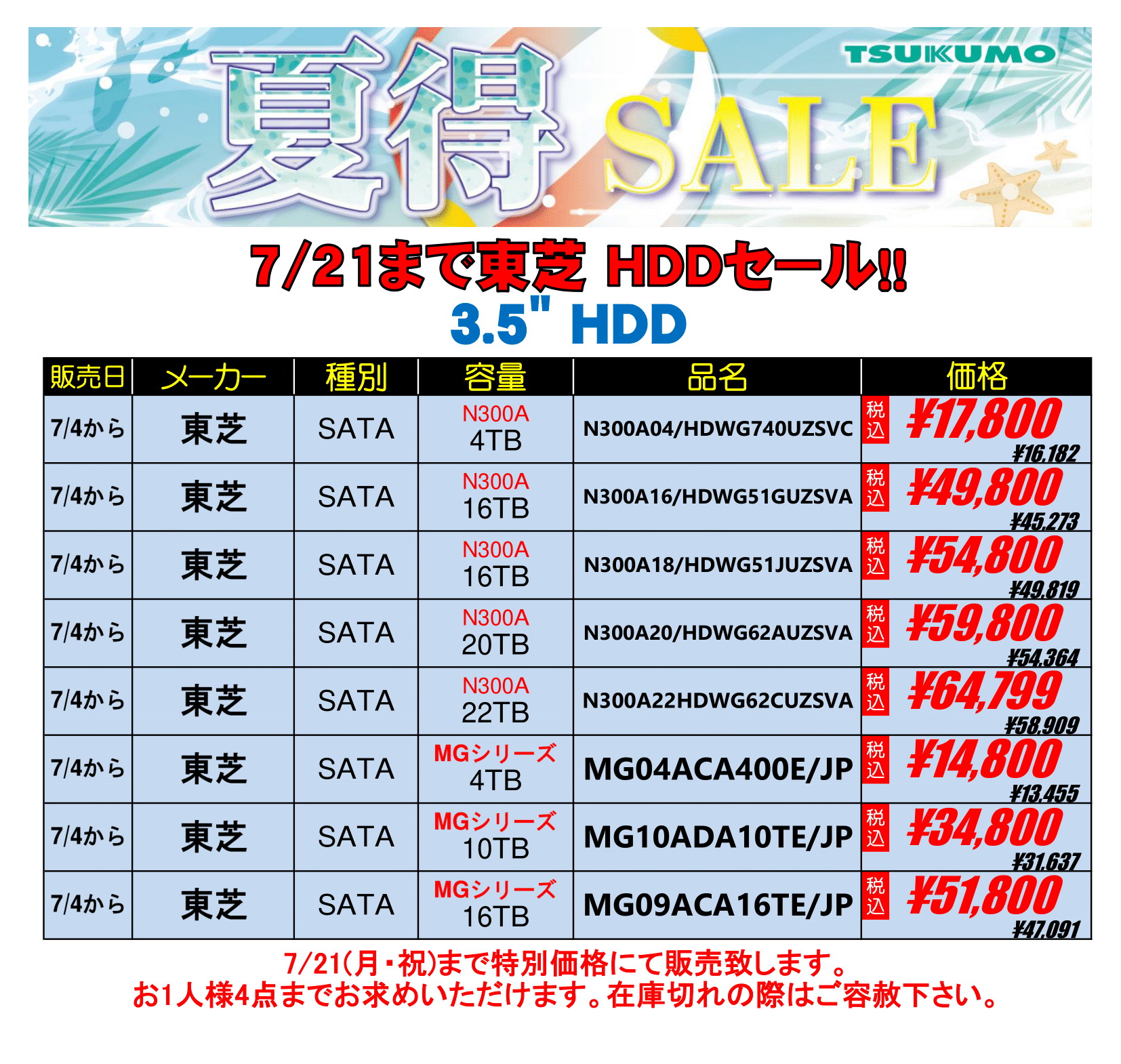 アキバお買い得価格情報(7月3日~4日調査)