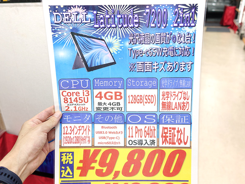 第8世代Core搭載2in1保証無しモデルが9,800円など、Dell製PC中古セール