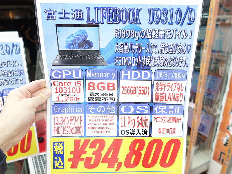 Core i5-10310U搭載の13.3型「LIFEBOOK U9310/E」が34,800円!中古PCセール