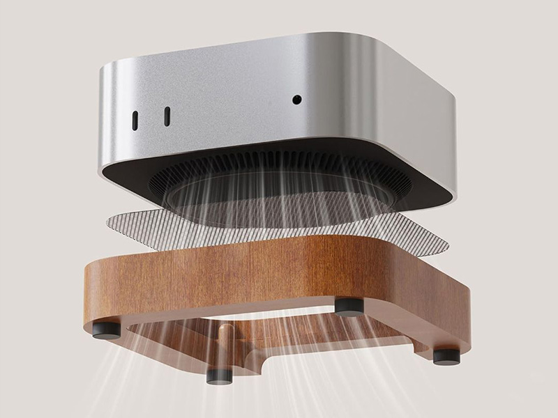 M4搭載Mac mini用の木製スタンドが入荷、本体上部を押すと電源オン