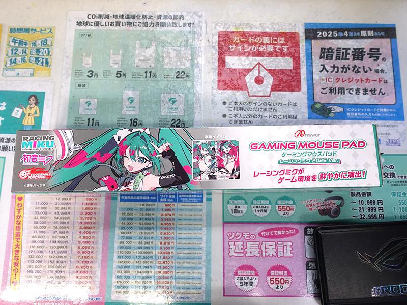 「レーシングミク2021Ver.」デザインのデスクマット、ツクモで展示中