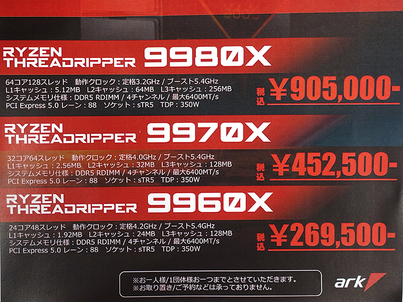 AMDのHEDT向けCPU「Ryzen Threadripper 9000」シリーズが発売、最上位は約90万円(3/7)