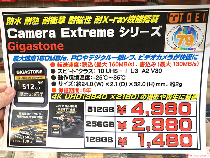 Gigastoneのカメラ向けSDカードが1,480円から、128GB/256GB/512GBの3モデル