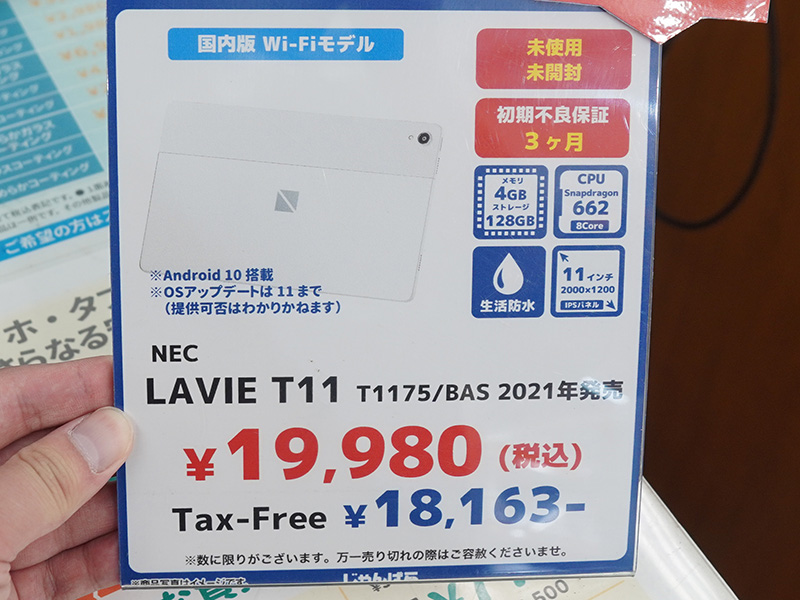 NECの11インチAndroidタブレット「LAVIE T11」が19,980円!未使用品がじゃんぱらに大量入荷