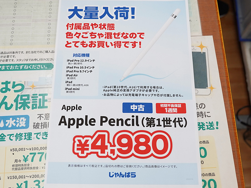 「Apple Pencil(第1世代)」が大量入荷!中古品が4,980円でセール